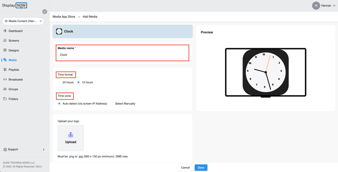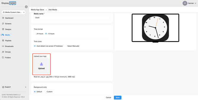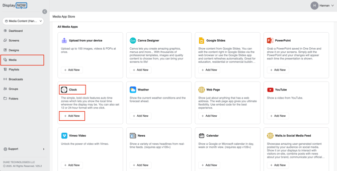 Step 1: Navigate to Display NOW Manager > Media App Store > Clock.