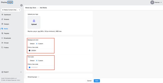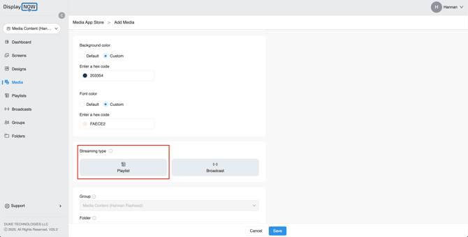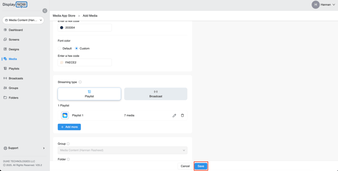 - Your content has now been added to the selected playlist. To finalize your changes, click "Save" at the bottom of the page. The media will then be displayed on your screens.