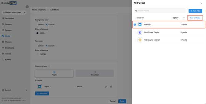 - Click on “Playlist” and choose your preferred playlist where you want your clock content to appear.