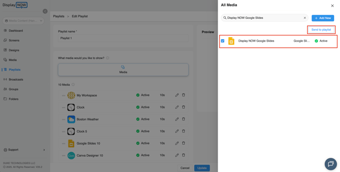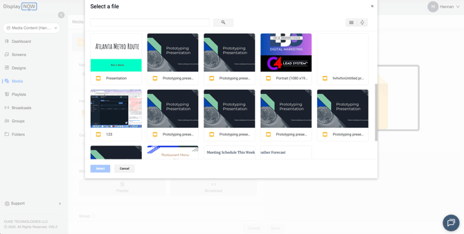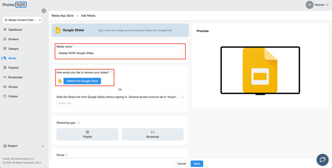 - After you have completed this step, head back to the Display NOW Manager and select your Google content you want to display on your TV screen.